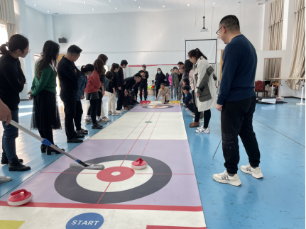 本次活动分为热身运动、认识地壶、攻守训练、激烈比赛、收获分享五个环节。在教练的带领下,经过讲解冰壶赛制规则,协作演练、制定战术、激情投掷,各位老师热情参与,全情投入,感受了旱地冰壶运动项目的快乐,展现了团结协作的团队精神,发扬了拼搏的奥运精神。
