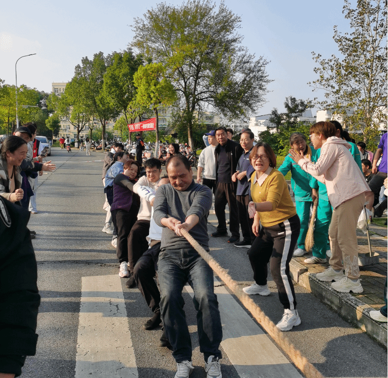 压轴的拔河比赛将气氛推向高潮,教师们紧握长绳、齐力后倾,呐喊助威声此起彼伏,红绸的每一次偏移都牵动人心。